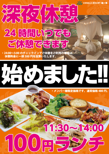 ご休憩でもご宿泊でもお腹を空かせてお越しください。