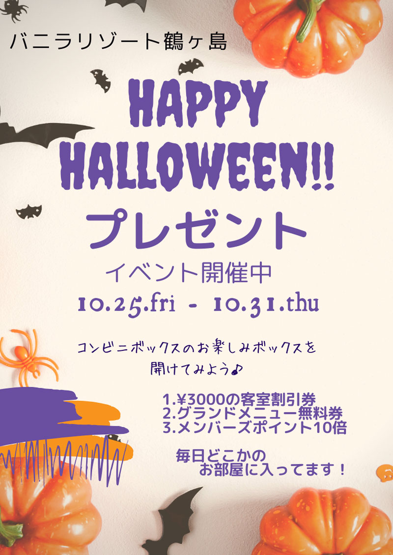 10/25~10/31 ハロウィンイベント開催中!3000円割引券などお得なクーポンをゲットしましょう!