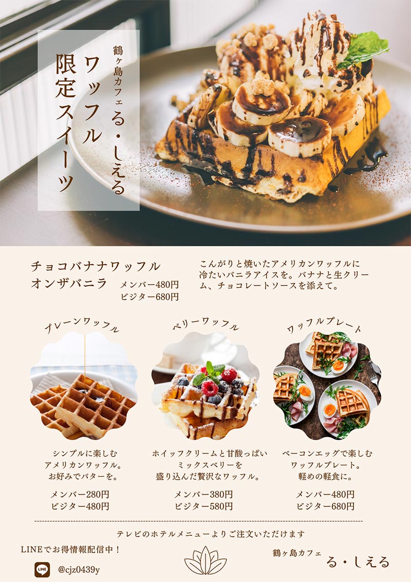 “鶴ヶ島カフェ る・しえる”がお届けする絶品ワッフルをぜひご賞味ください♪