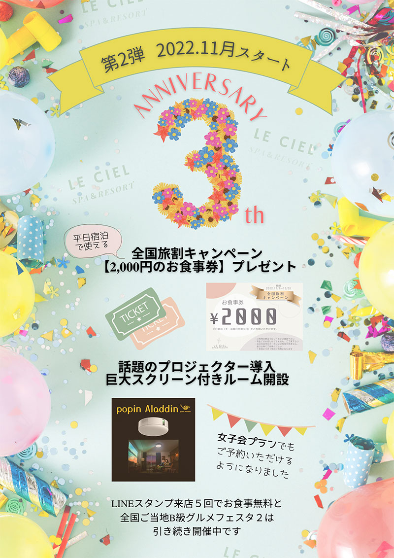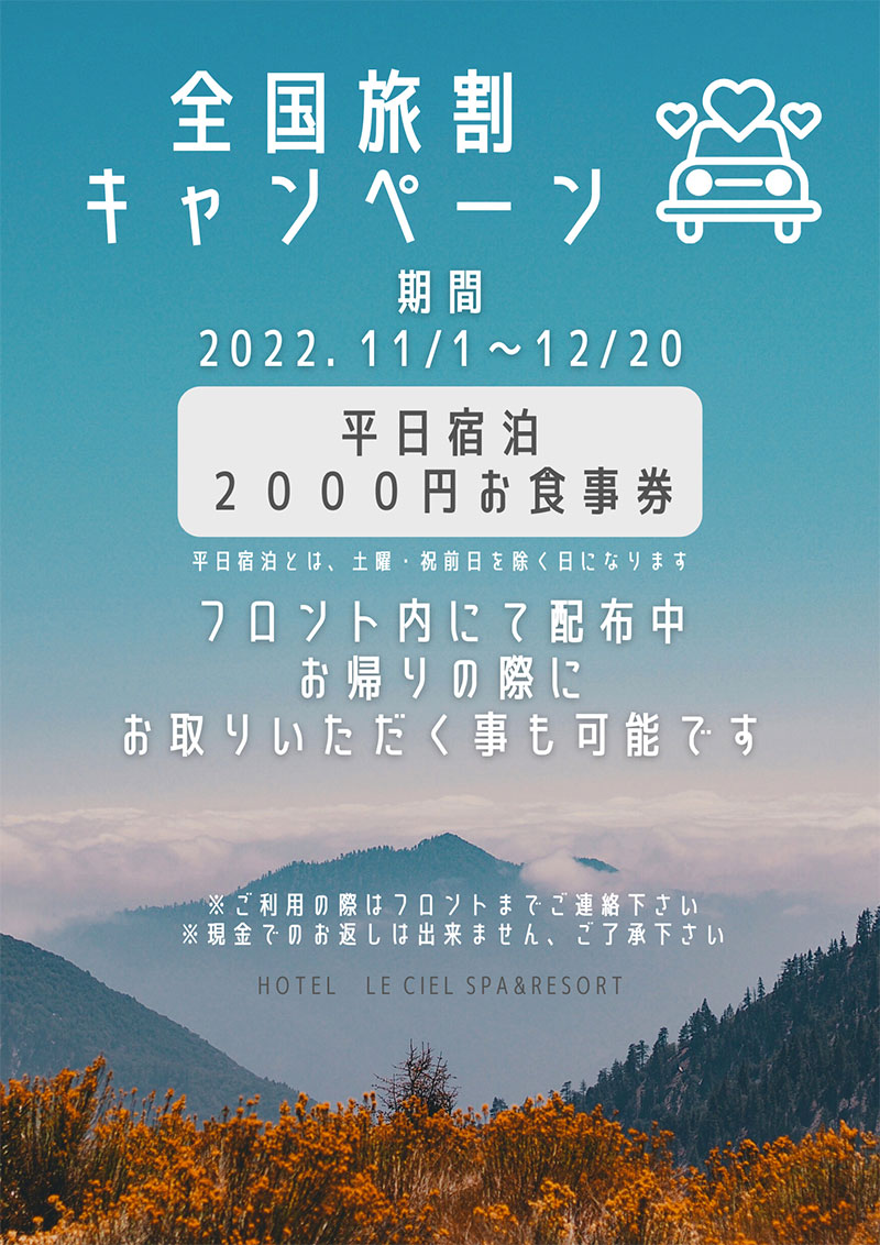 ②ご宿泊のお客様、2000円分のお食事券プレゼント