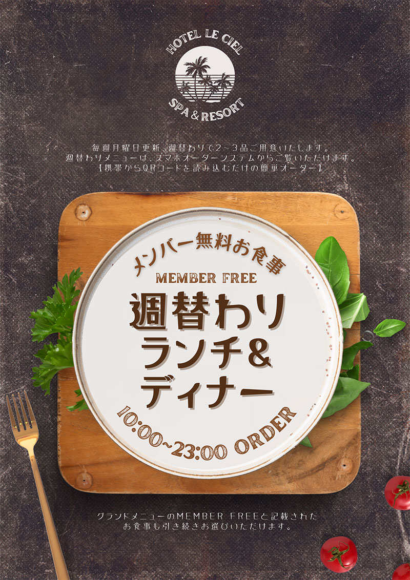 • 2023.05【5月1日スタート】メンバー無料、週替わりランチ&ディナー♪