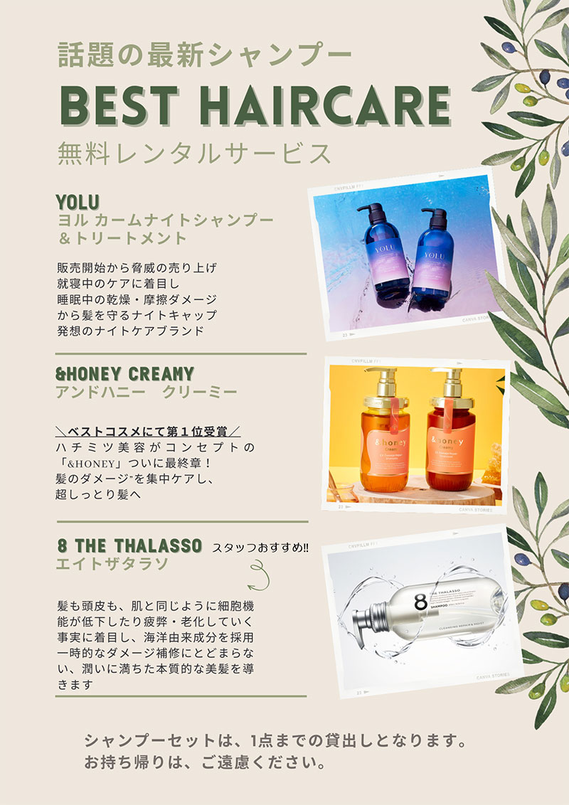 • 2024.03【人気のレンタルシャンプーはじめました】