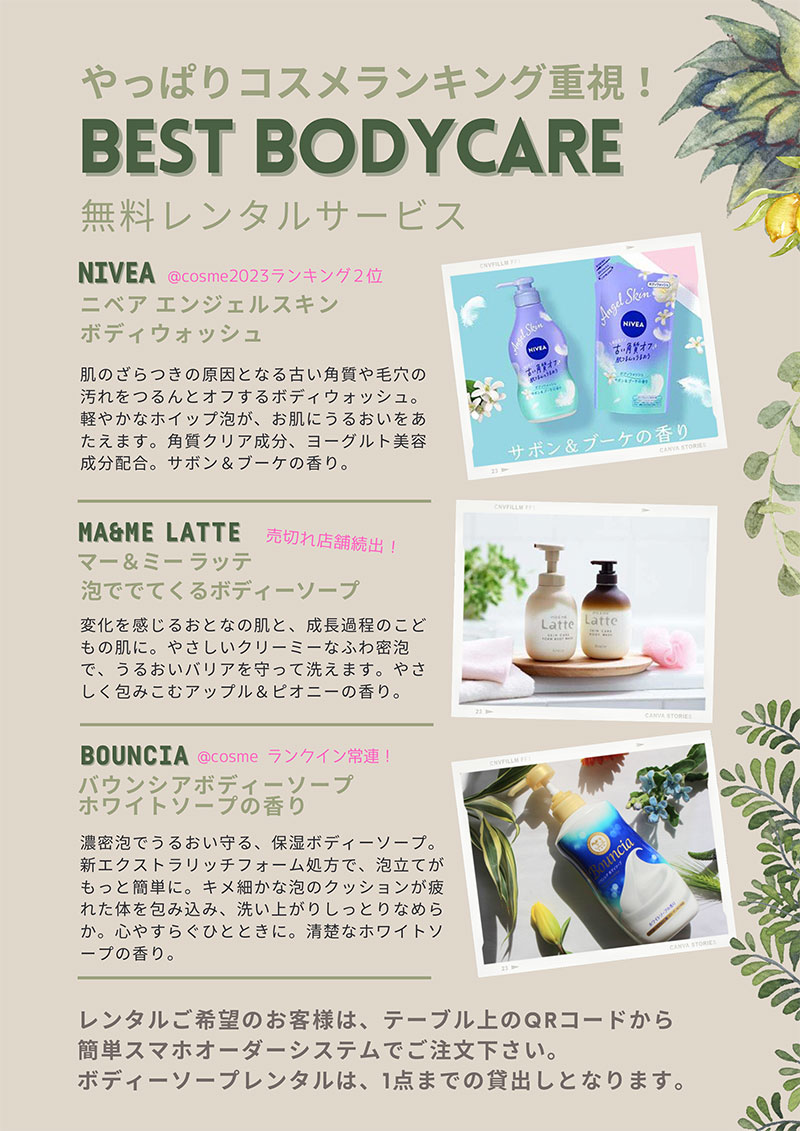 王道から最新のボディーソープが無料でレンタルできちゃいます!